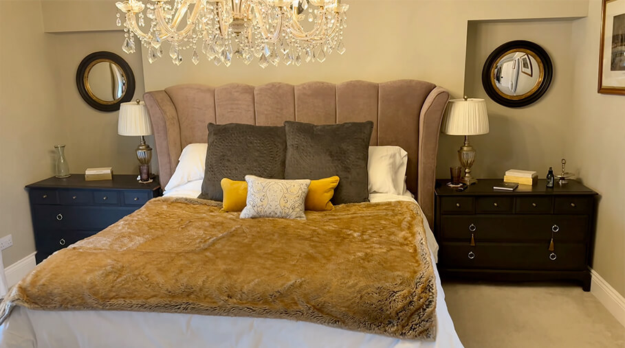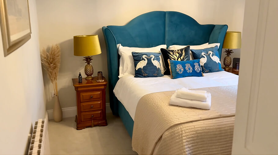 Upstairs, the bedrooms continue the same quiet confidence. Hotel-quality bedding. Deep, comfortable pillows. Space to properly unpack and settle in.
